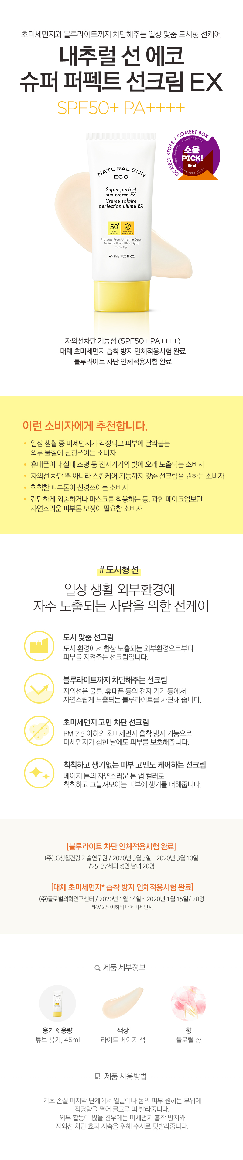 [ザ フェイス ショップ] ナチュラル サン エコ スーパー パーフェクト サン クリーム SPF50+ PA+++ 45ml